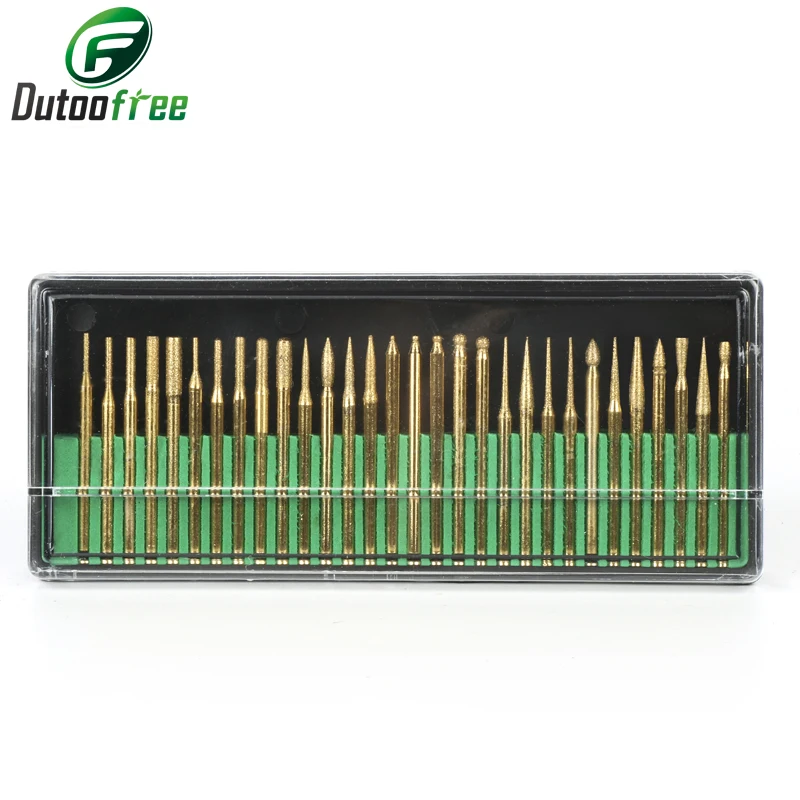 30Pcs/Set Titanium-Plated Alloy Grinding Head 3Mm Dremel