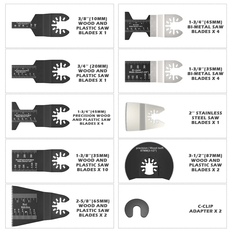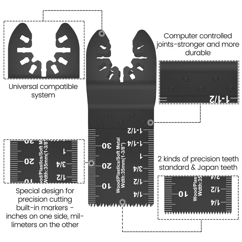 Exlnt Quality And Higher Durability Home Decoration Work Occupies A Special Position In Swinging Multi-Function Tools, And The Saw Blade Is The Core Ro. This Swing Saw Blade Kit Is Made Of High Carbon Steel And High Speed Steel, More Durab And Sharper, They Can Improve Users By Achieving Extremely High Cutting Speed On Various Materials (Such As Wood, Plastic, Gypsum Board, Soft Metal) Effectiveness. And Other Materials.