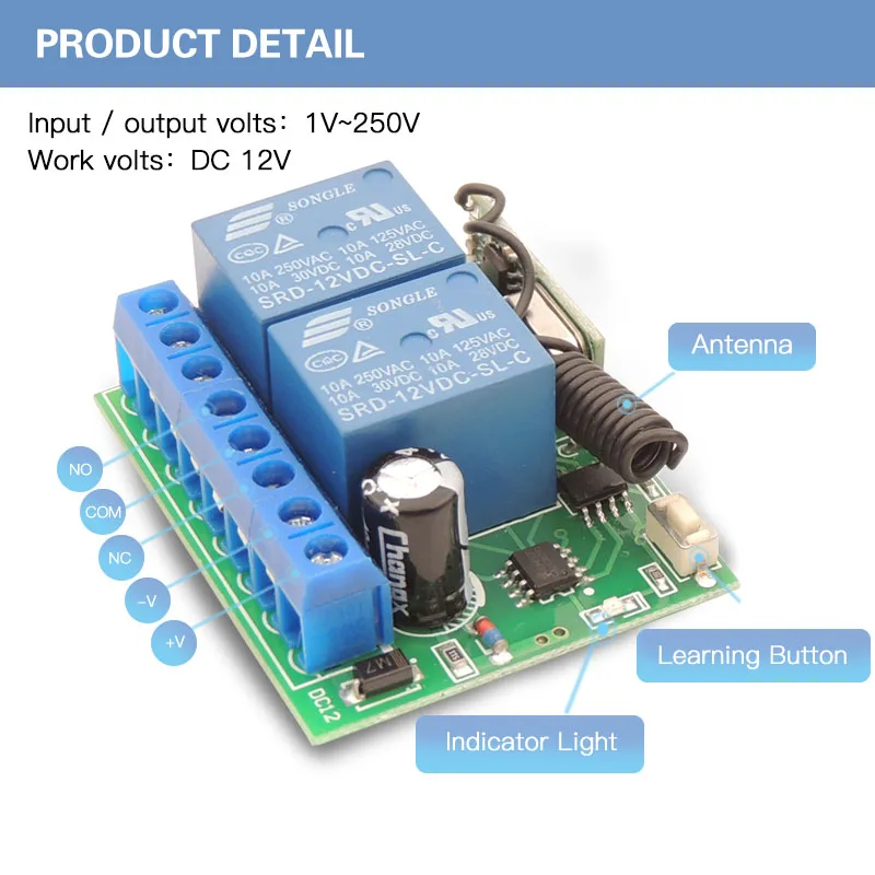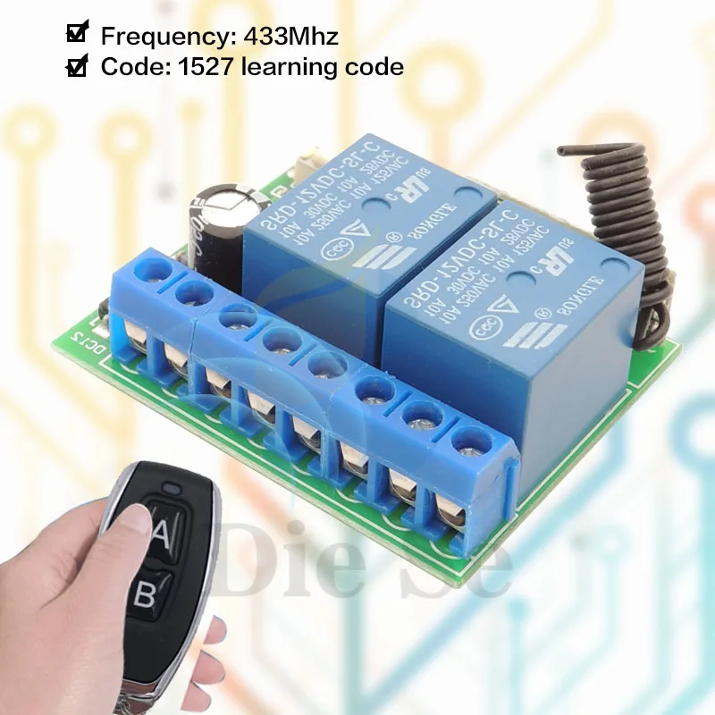 433 Mhz Remote Control Switch Dc 12V 10A 2 Gang Rf Relay