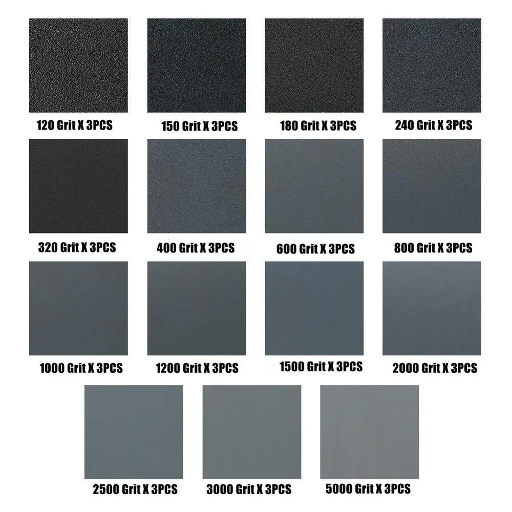 1 Block Sanderplus 45 Pieces Sandpapers Assorted Grits In120/150/180/240/ 320/ 400/ 600/ 800/ 1000/ 1200/ 1500/ 2000/ 2500/ 3000/5000 Grit (3 Of Each Girt)