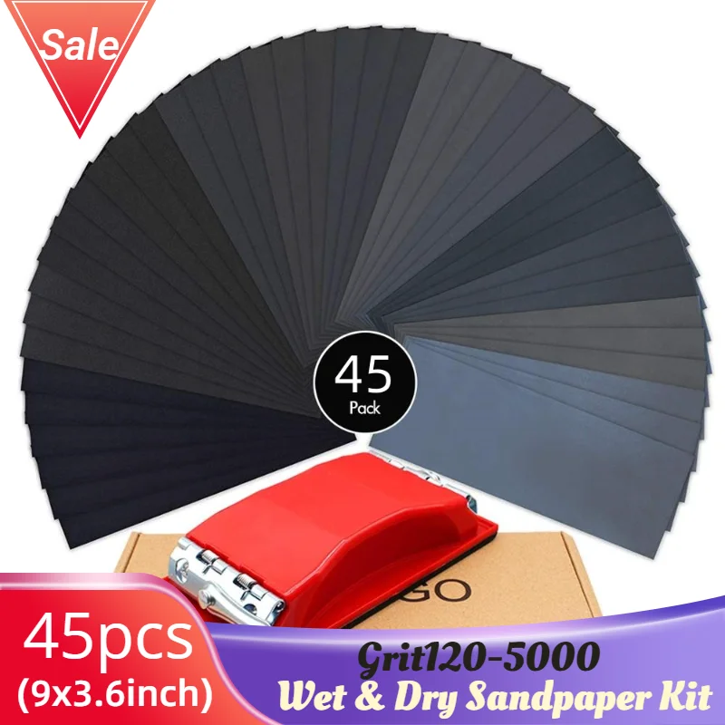 45Pcs Wet Dry Sandpaper Kit Grit120-5000 Assortment