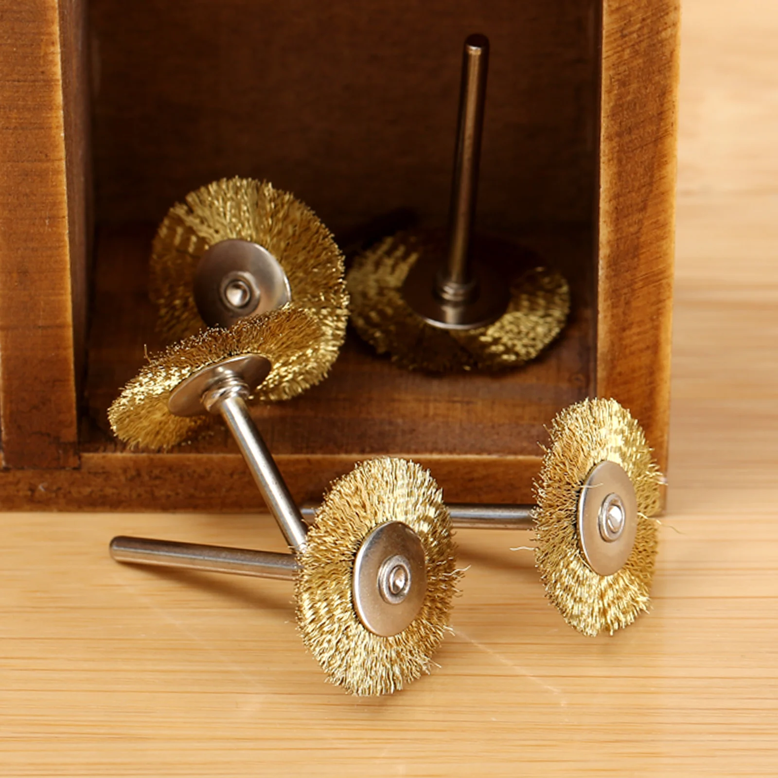5Pcs/Set 25Mm Polishing Copper Wire Brushes Wheel Dremel Accessories Drill Rotary Grinding Machine Tools Golden 3.17Mm Shank
