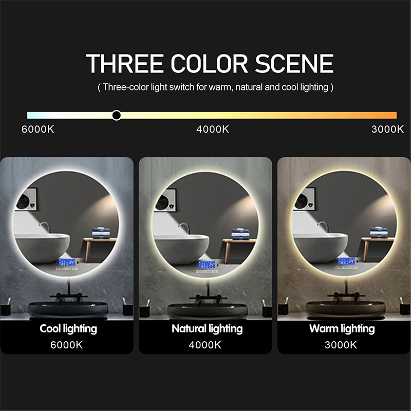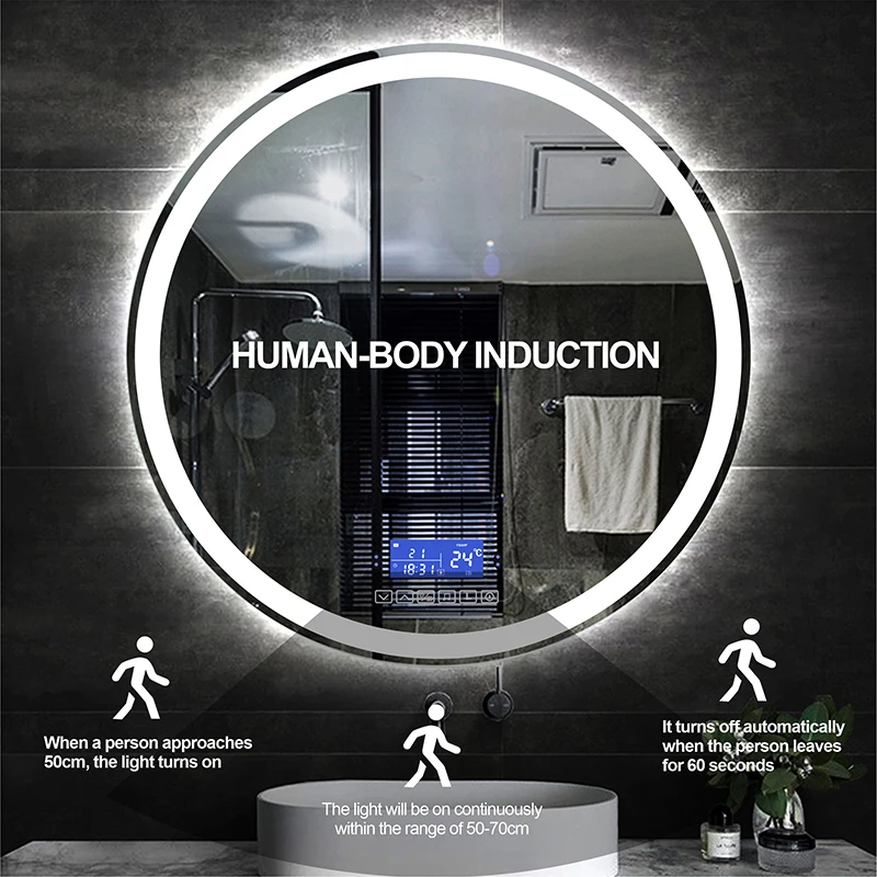 Bluetooth Round Bathroom Makeup Mirror With Led Light+Human Body Induction+Anti-Fog+Touch Switch+Dimming Smart Vanity Mirror
