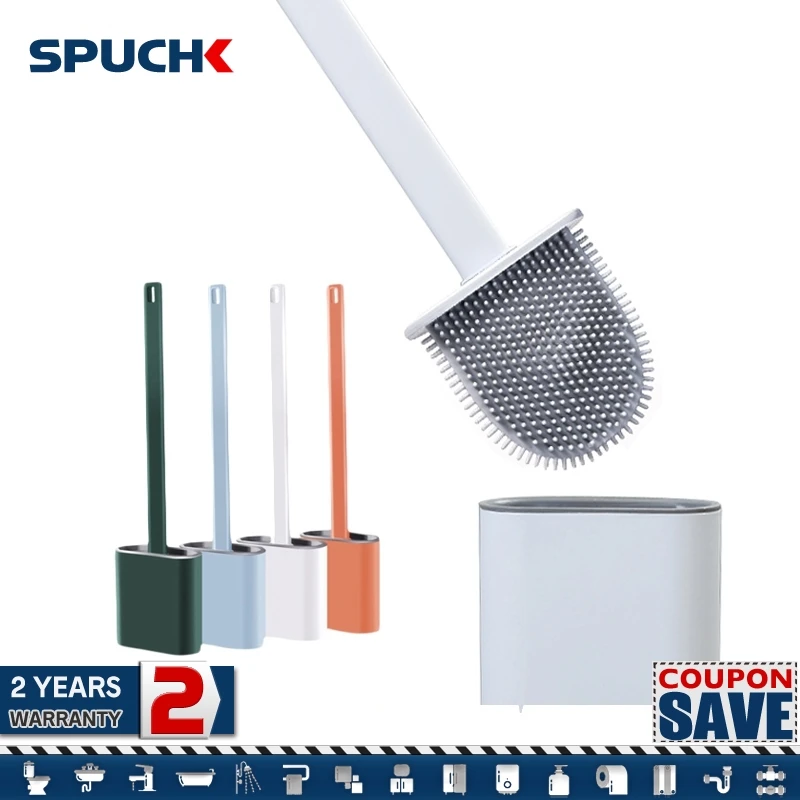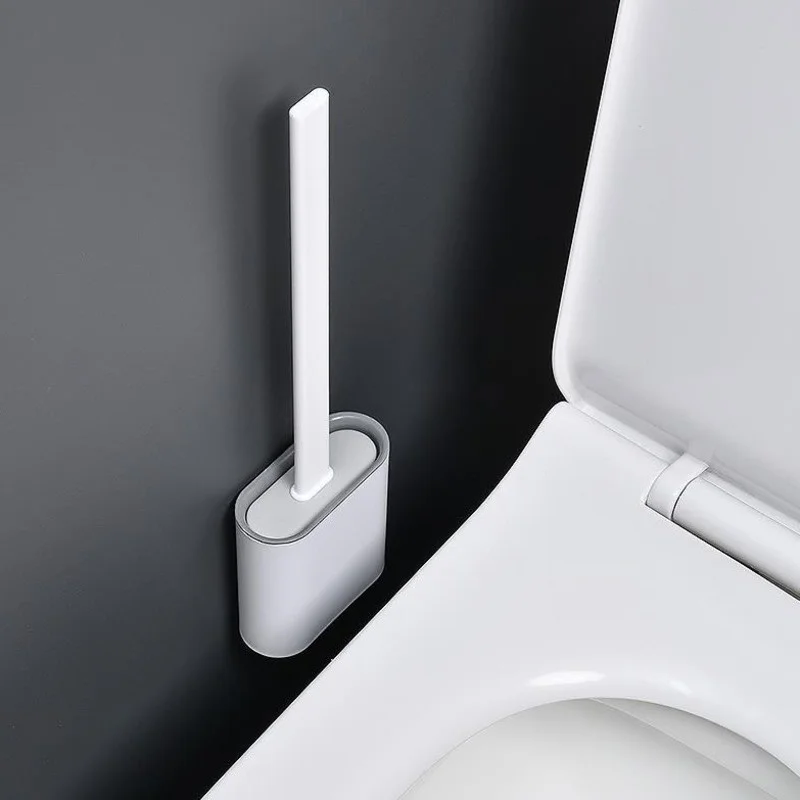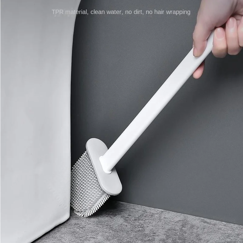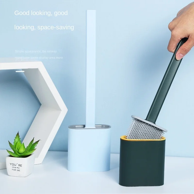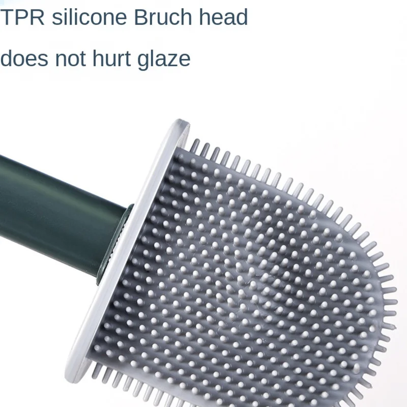 Brush Silicone Toilet Flat With Holder Set Removable Long