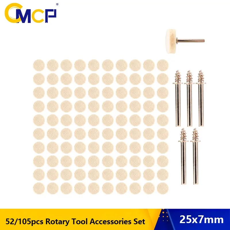 Cmcp Polishing Wheel 25X5Mm 25X7Mm Wool Felt Polishing Wheel Buffing Wheel With 3.175Mm Shank Mandrel For Dremel Rotary Tool
