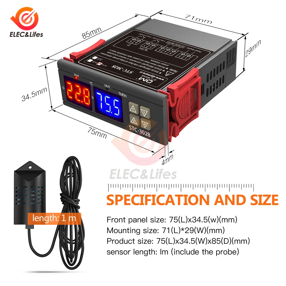 Digital Thermostat Temperature Humidity Controlr Stc-3028 Sss