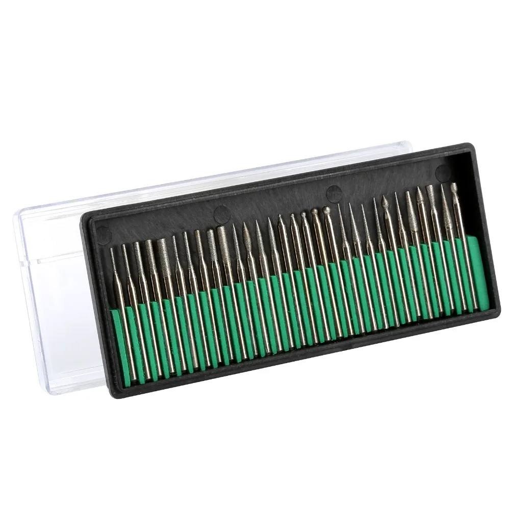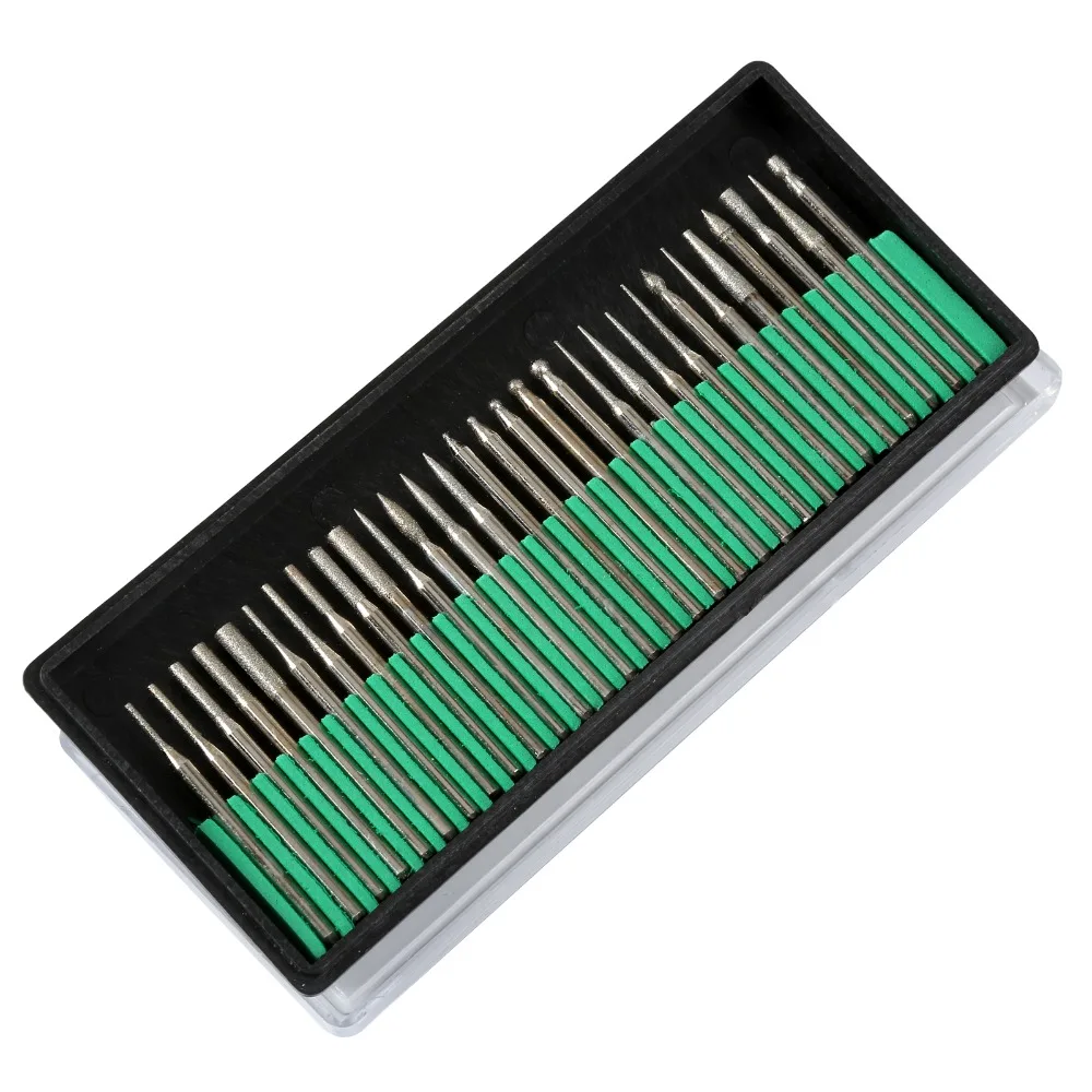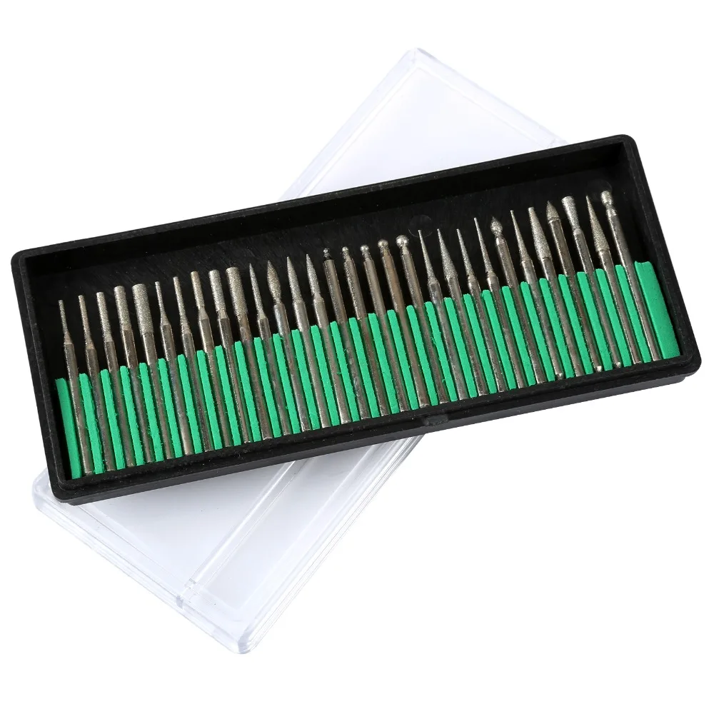 30Pcs Diamond Burr Bits Drill Dremel Rotary Jewelry Tool Set 3Mm Shanks For Engraving Carving