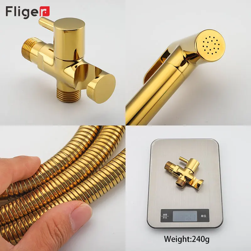 Fliger Brass Toilet Bidet Faucet Handheld Bidet Sprayer Gold Bidet Faucet Single Cold Water Portable Shower Head Hygienic Shower