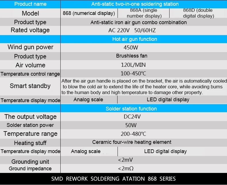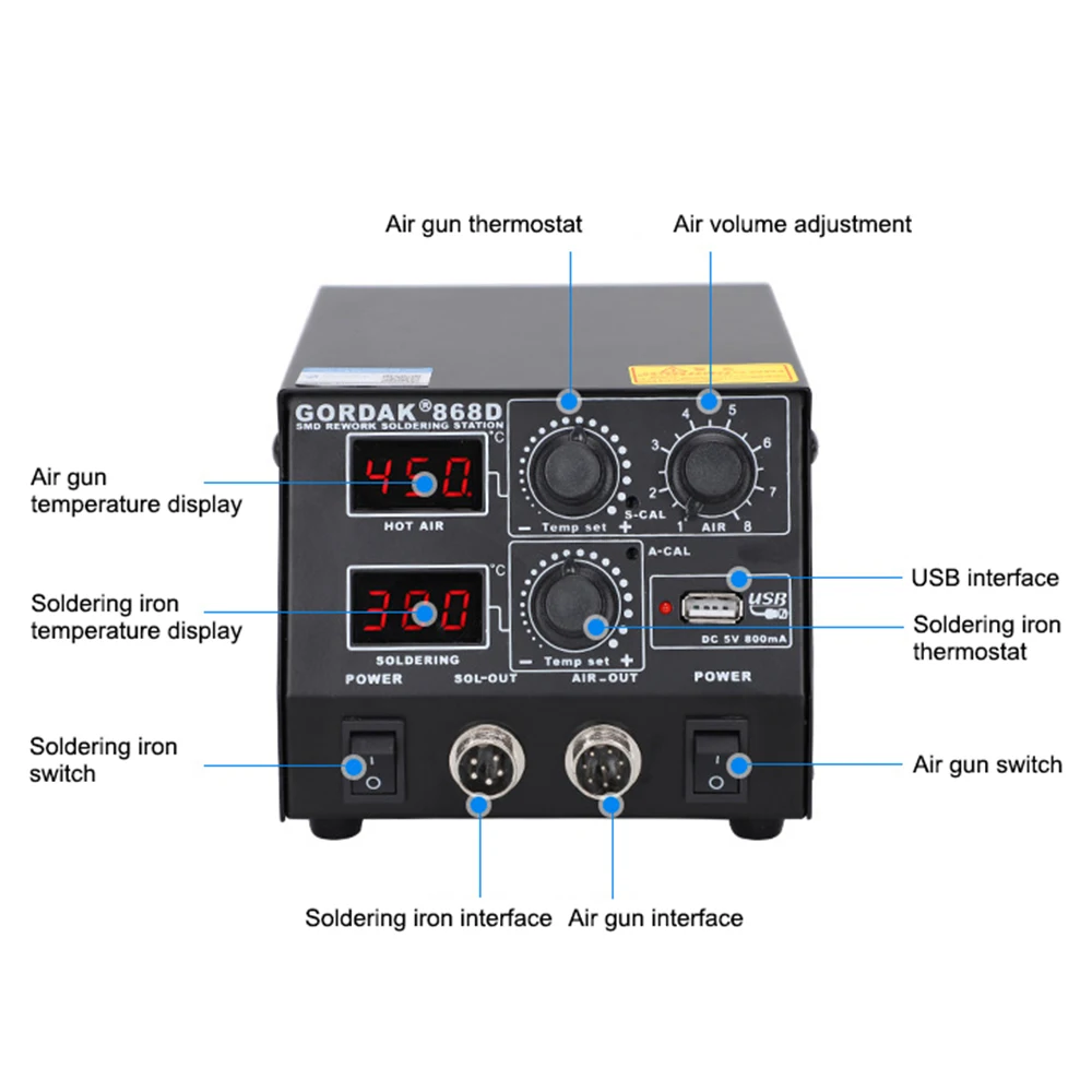 Gordak 868D Intellint 3In1 Anti-Static Hot Air Dual Sss