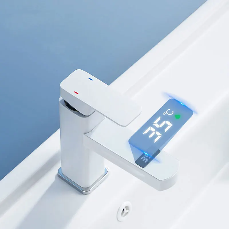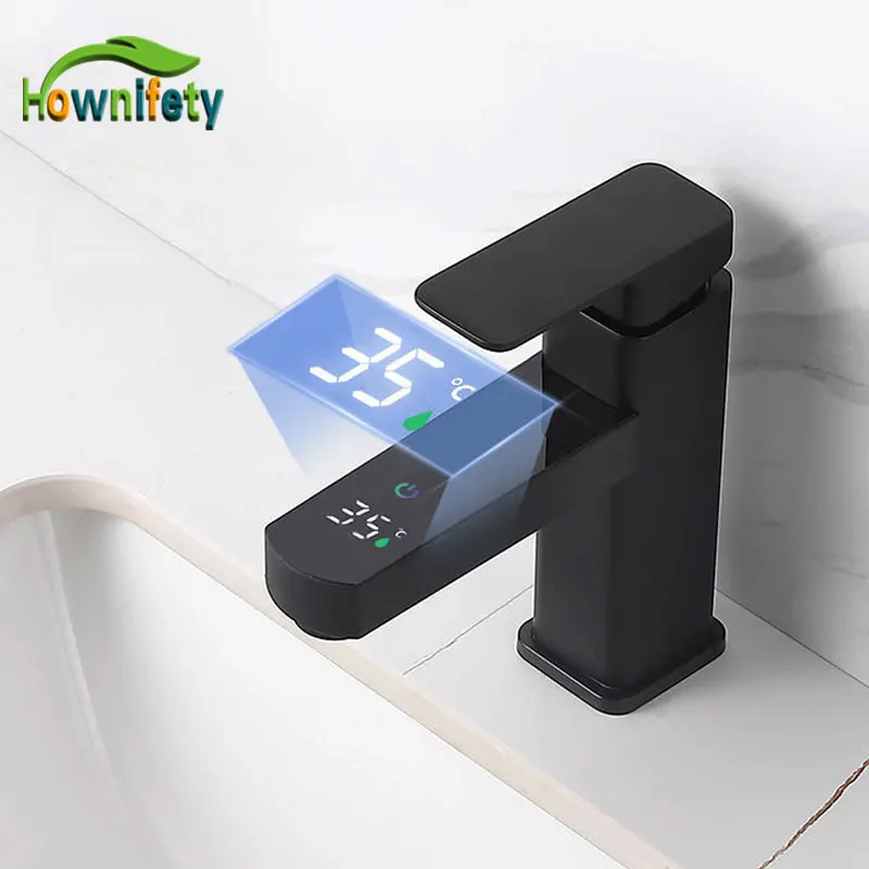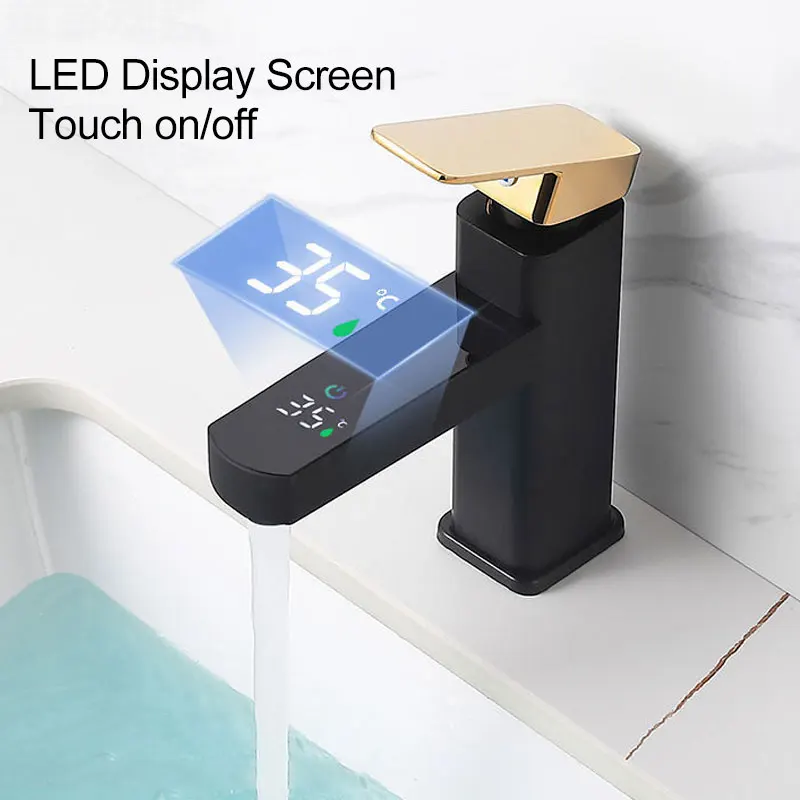 Led Temperature Display Bathroom Basin Faucet Black White Gold Cold Hot Mixer Short Tall Soft Wash Face Tapware