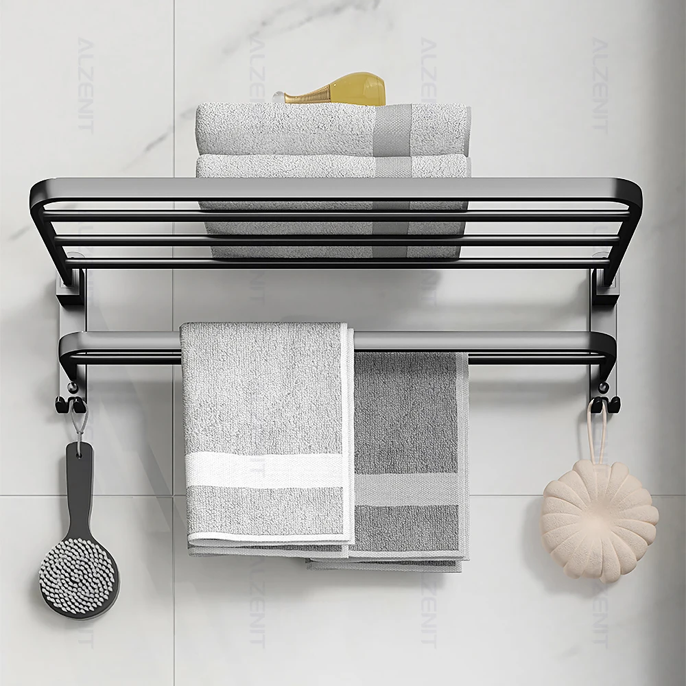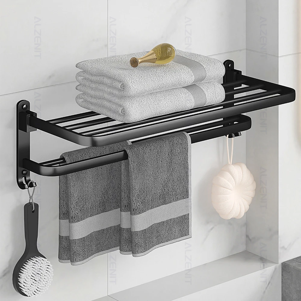 Matte Black Towel Rack 40-60Cm Movable Holder With Hook