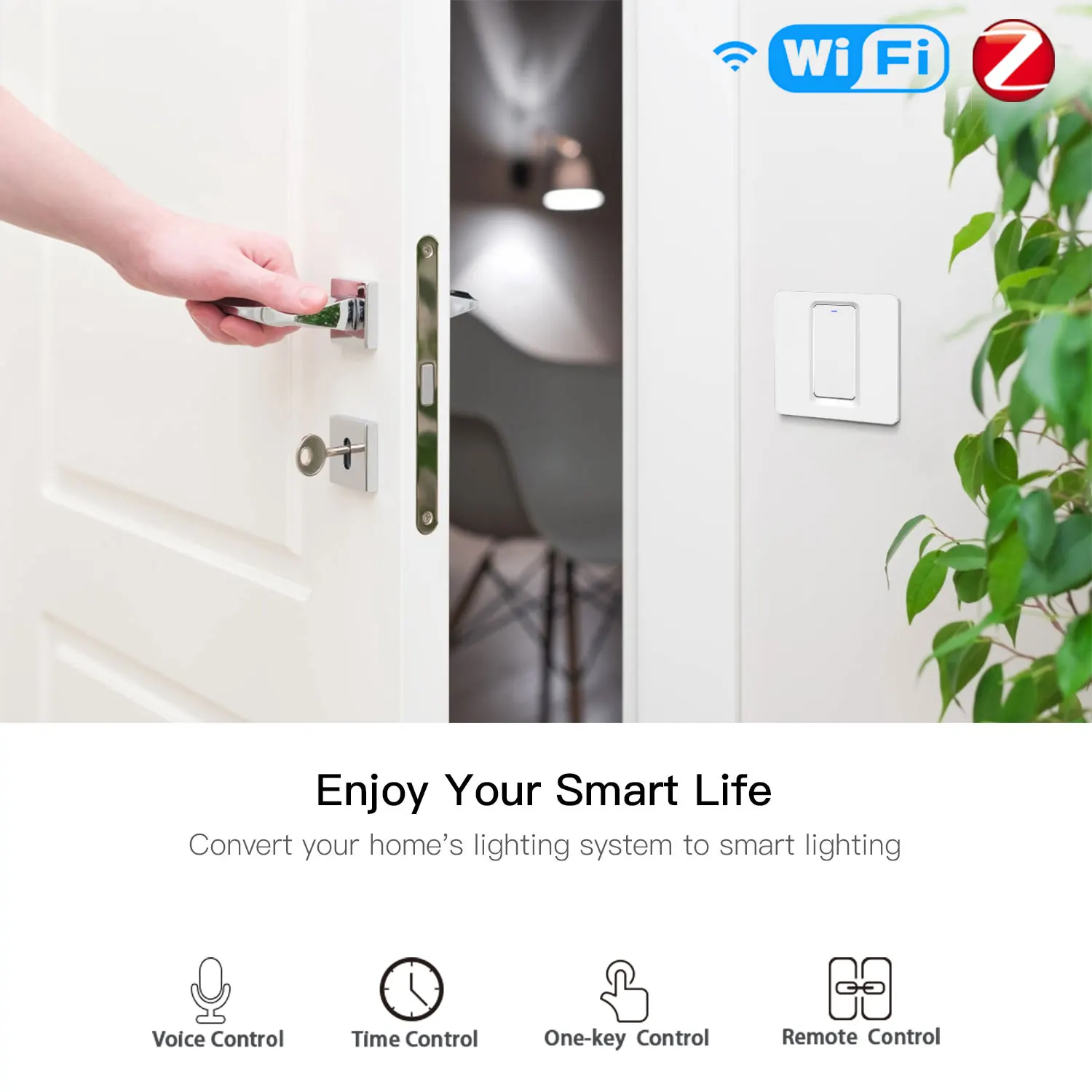 New Upgraded Wifi Zigbee Tuya Smartswitch Eu Uk Push Button Wall Light Switch No Neutral Wire And N+L Required With Multi-Control Assosciation 2Mqttsetup Smart Life Tuya App Voice Control With Alexa Google Home 1/2/3 Gang
