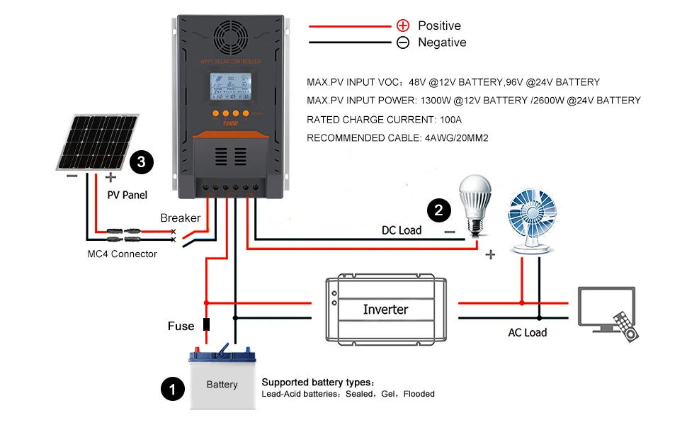 Mppt 100A 12V 24V Solar Charger And Discharge Protection