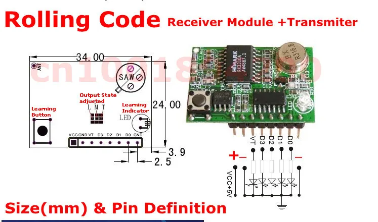 It Is An Excellent Uhf Rolling Code Received Module ,It Have Been Used The Advanced Rf Integrated Circuit And With The Dead Reliable Keeloq Encryption Algorithm ,The Circuit Design Special And Stable And Reliable. Strong Interference Rejection It Can Be Used In Any Kindsevereenvironmentand High Secure And Reliable Occasion. Because It Included The Encoding Circuit .It Can Be Apply To Can Be Used Directly In Any Kind Garage Door Wireless Remote Control System .Any Kind Alarm System , Access Control System ,And Any Other Wireless Remote Control System , Industrial Design.