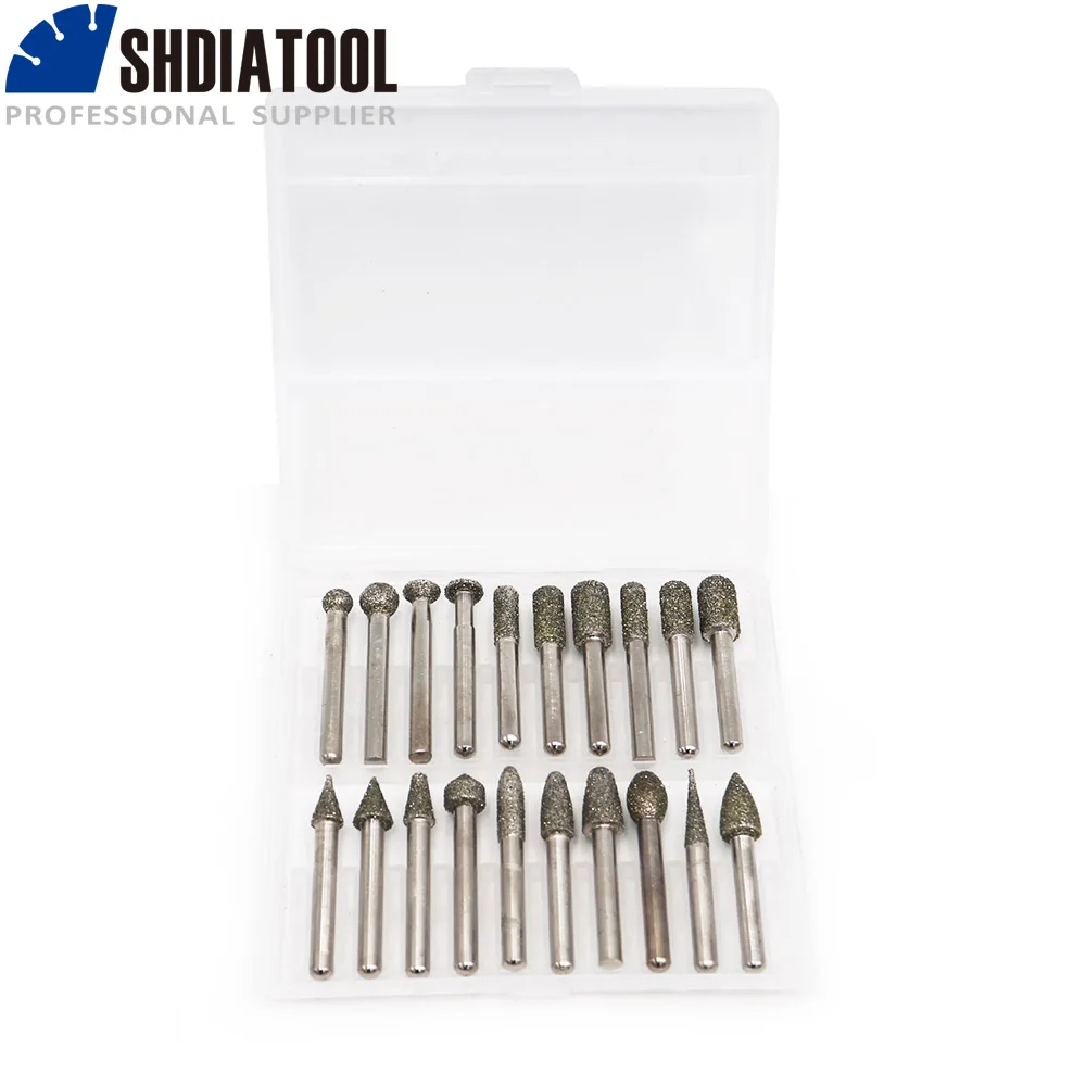 Shdiatool 20Pcs/Set Electroplated Diamond Grinding Heads 46