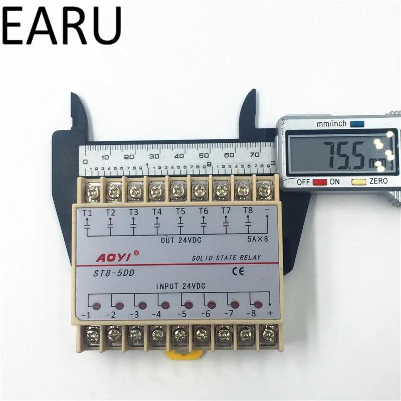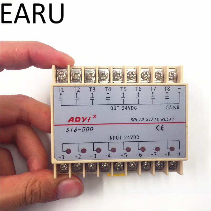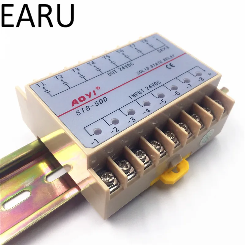 5Dd 8 Channel Din Rail Ssr Eight Input Output 24Vdc Single Phase Dc Solid State Relay 5A Plc Module Controller