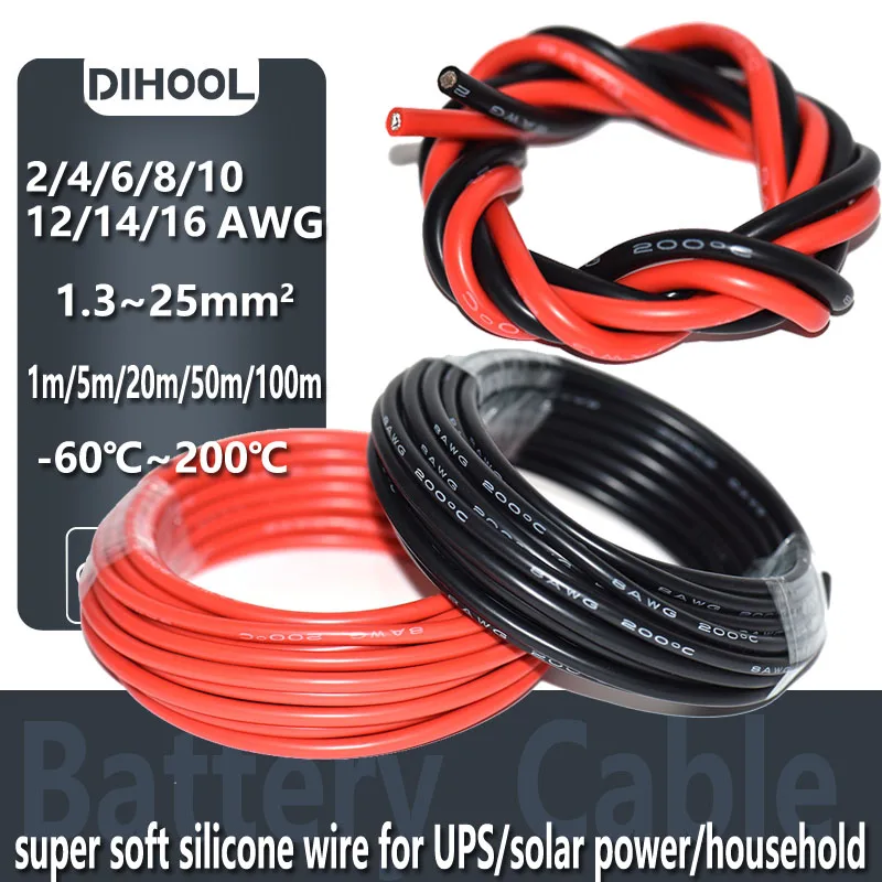 Super Soft Silicone Cable 1M~100M 4~16Awg 1.3~25Mm2 Solar