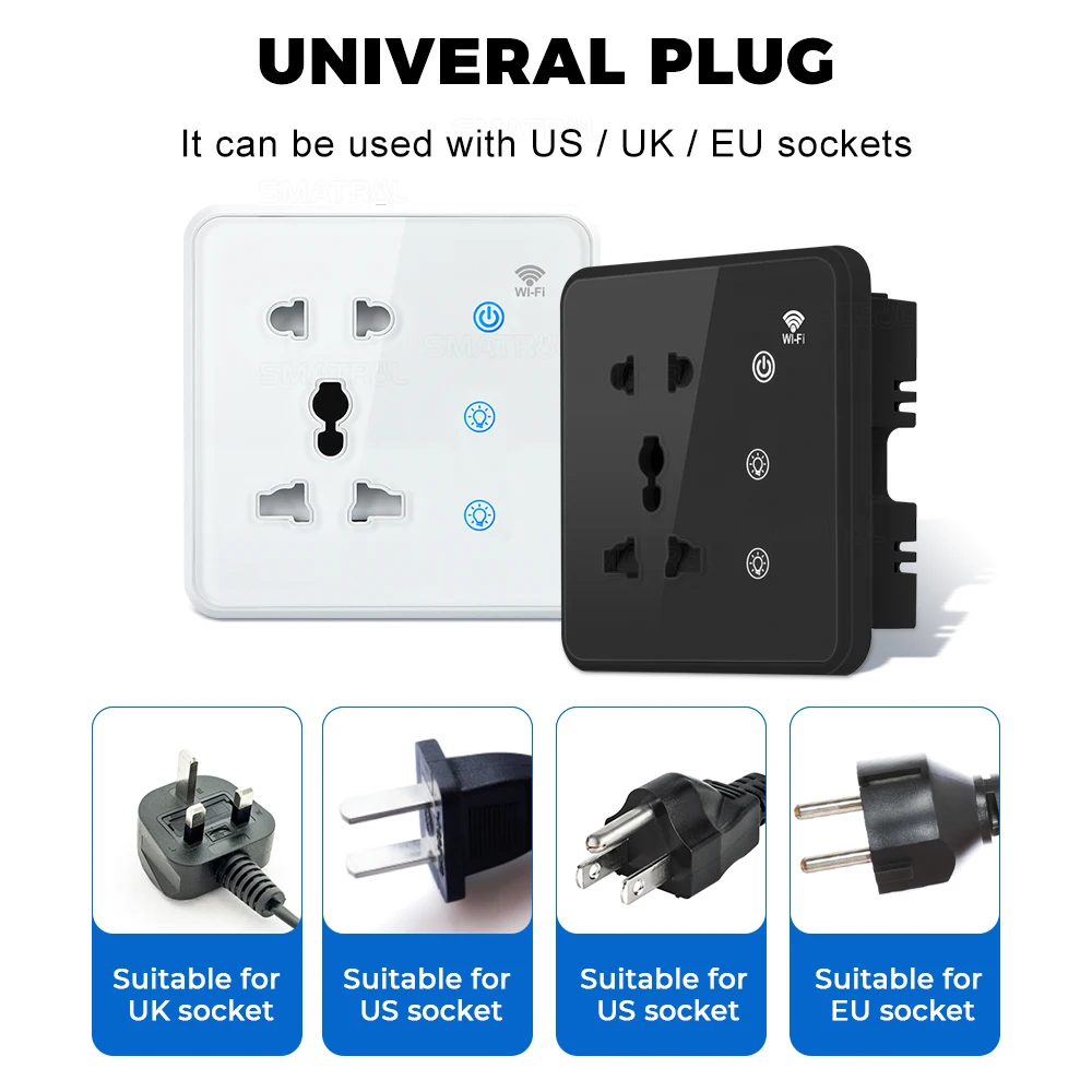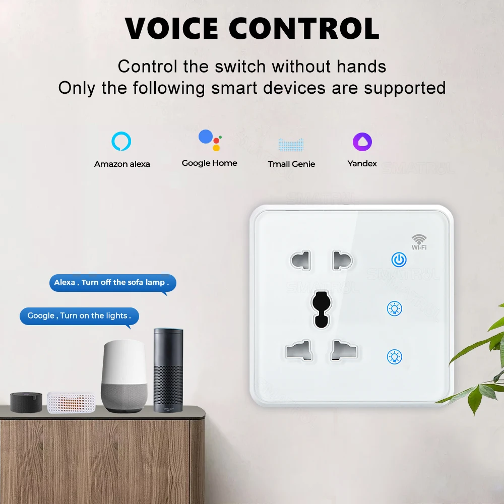 Tuya Wifi Wall Smart Socket 2Gang Switch Light Touch Us Eu