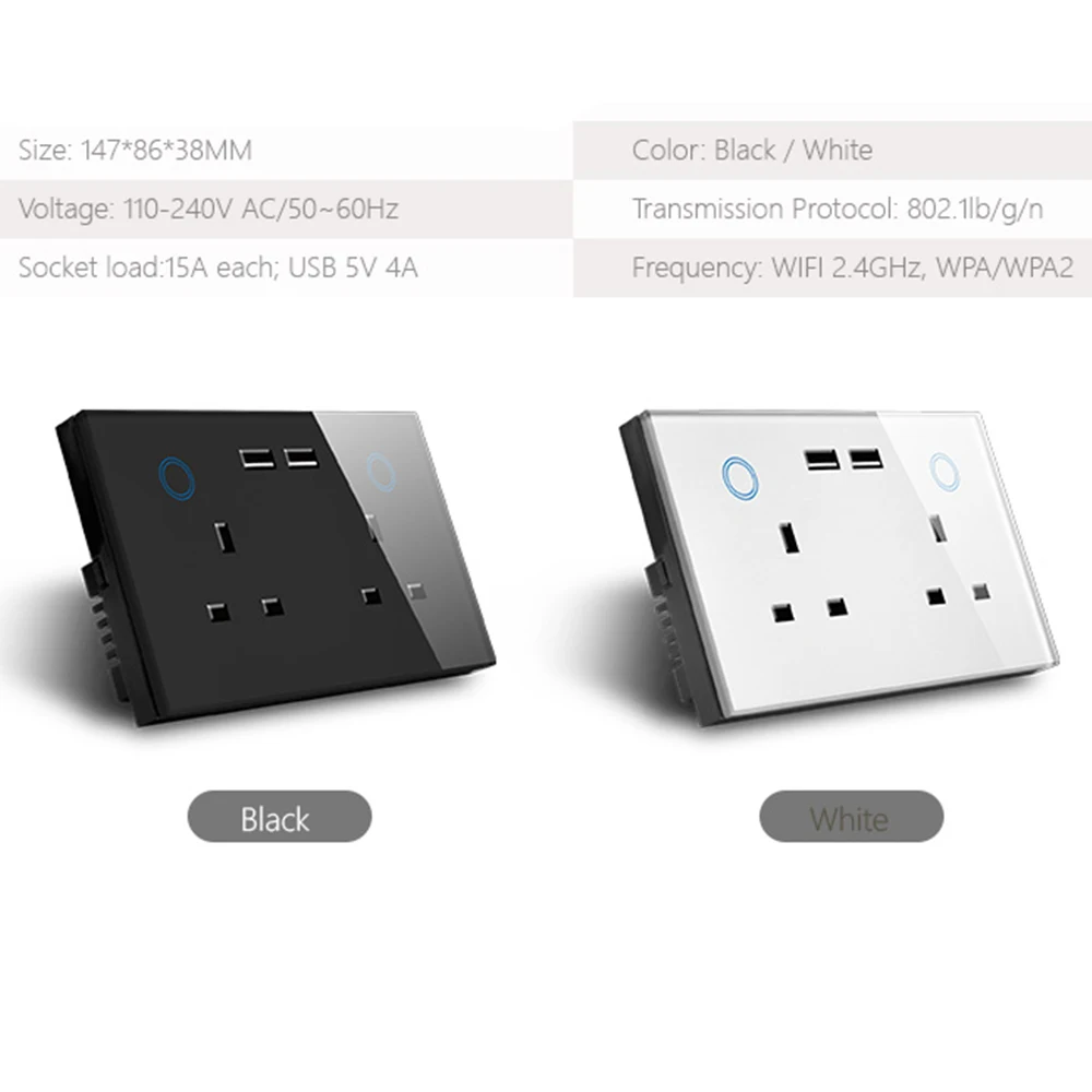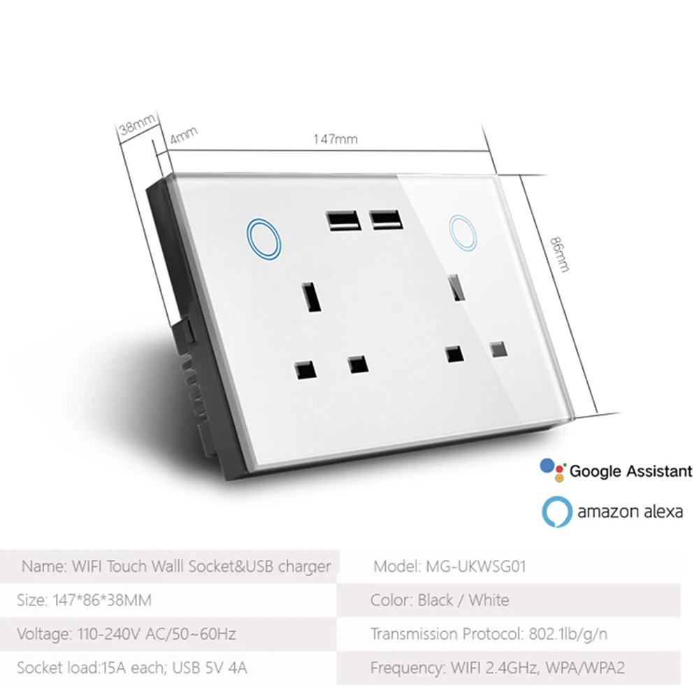 Smart Wifi Wall Socket With Usb Socket Charger Smart Switch Outlet Plug Works With Amazon Alexa Echo, Google Assistant, Nest No Hub Required